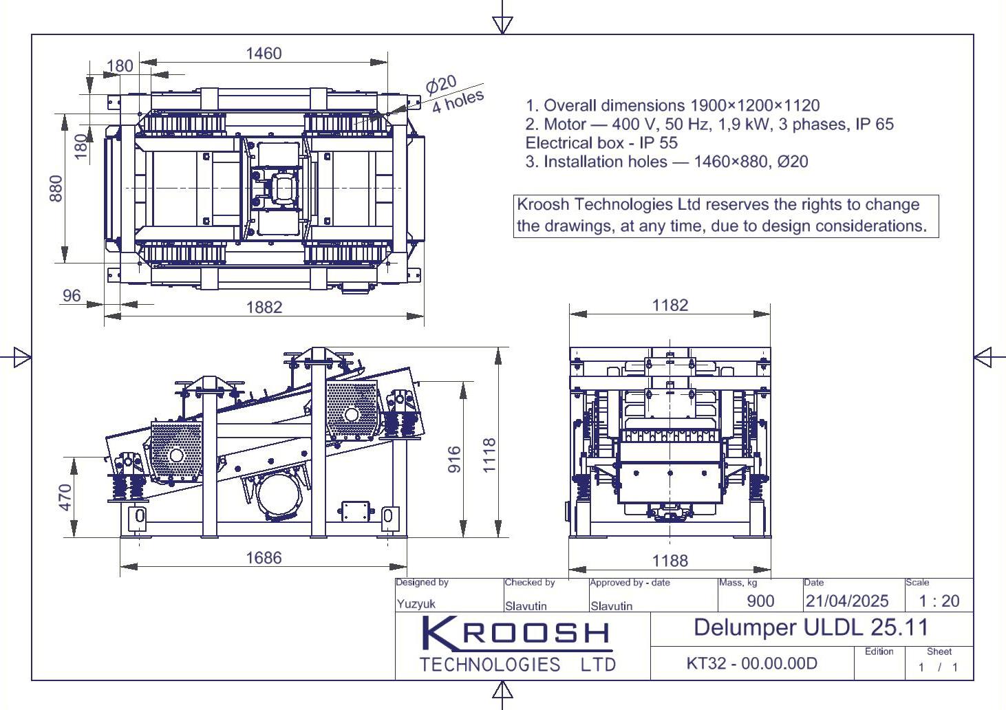 The housing is supported by eight steel springs mounted on a stationary frame fixed to the foundation. Two stationary plates with guides are mounted on this frame with adjustment capability.
